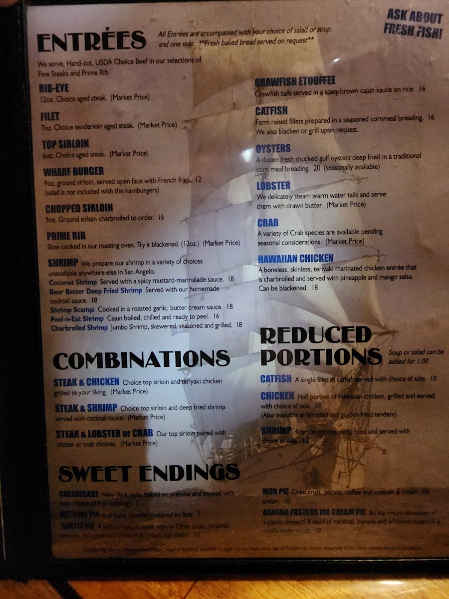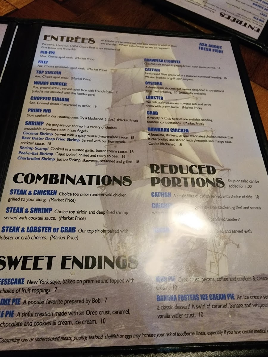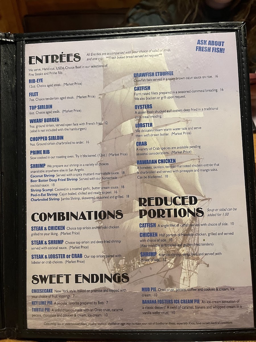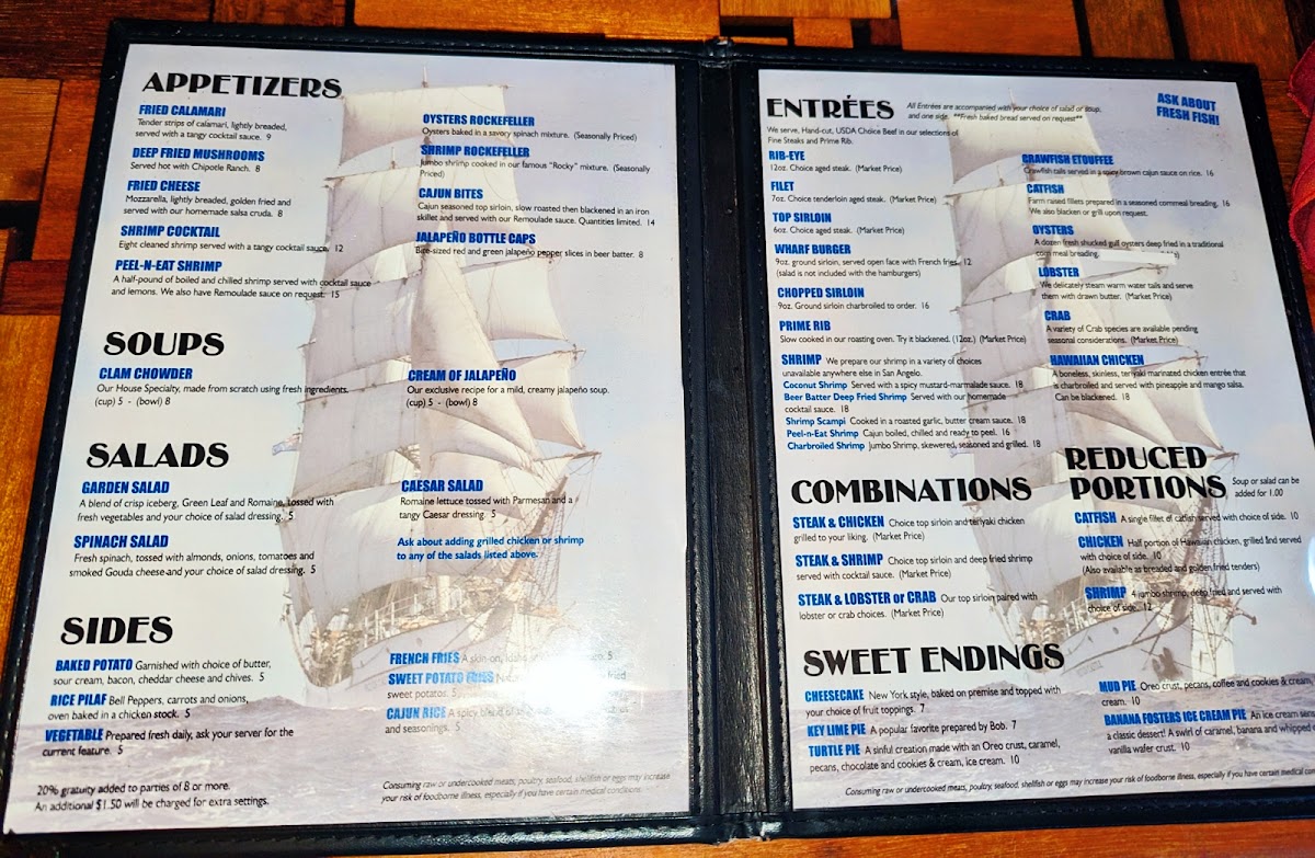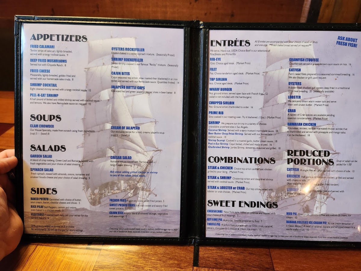 If you're looking for a place that combines delicious food with a relaxing atmosphere, the Wharf Restaurant And Tavern Menu has something for everyone. Located at 2302 TX-306 Loop in San Angelo, TX, this spot is perfect for a laid-back meal with friends or a cozy family dinner. The menu offers a variety of mouthwatering dishes, from fresh seafood to savory comfort food that will have you coming back for more. Whether you're craving a juicy steak, a flavorful fish dish, or a hearty burger, The Wharf has options to suit all tastes. Paired with an inviting selection of drinks, it's easy to unwind and enjoy the flavors of each carefully prepared dish.